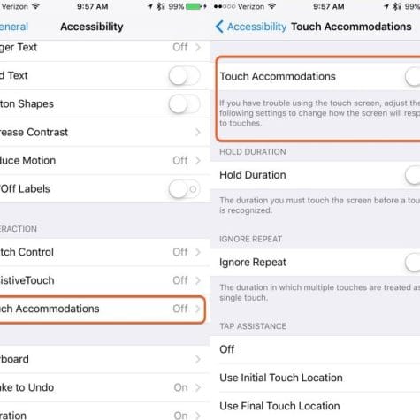 Touch Accommodations were introduced to Accessibility Settings as part of the iOS 9 update. For those of us working with people with disabilities, this is one of the most important